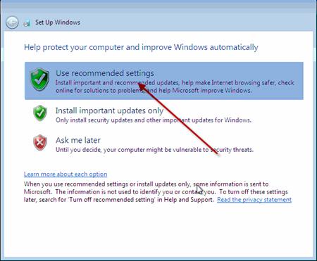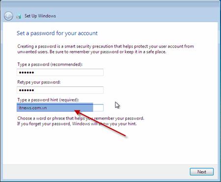 3. Khởi độngWindows 7 lần đầu tiên. - Quá trình khởi động với màn hình 4 trái cầu 4 màu chạy theo từng quỹ đạo riêng và cuối cùng chúng hội tụ vào một điểm để tạo nên biểu tượng truyền thống củaMicrosoft. - Sau khi quá trình thựchiện ở bướcđầu khởi động , qua bướcnày chúng ta sẽ được chiêm ngưỡng thực sự nhữnggì mà Windows 7 đã thay đổi và mang lại cho chúng ta so với phiên Windows Vista. Trướchết là màn hình Preparing mà những ai đã sử dụng Windows Vista cũng đều quen thuộc nhưng ở Windows 7, màn hình này đã thực sự thay đổi và lột xác hoàn toàn. Ngay bên dướilà một thanh ngang với hình một vệt sang chạy từ trái sang phải ngay ở bên dưới dòng chữ Setup is preparing your computer for first use. - Sau màn hình này là màn hình yêu cầu chúng ta điền tên của tài khoản quản trị và tên máy tính sau đó click Next. - Tiếp theo bạn cần nhập mật khẩu cho tài khoản quản trị , ở đây bạn có thể nhập vào ô gợi nhớ khi bạn quên mật khẩu và click Next. - Hộp thoại activation , nếu có activation code hoặc key mà bạn mua bản quyền , thì bạn điền vào ô Product key … . Cuối cùng nhấn Next để qua tiếp bướcsau. - Màn hình kế tiếp bạn có thể lựachọn kiểu để bảo vệ hệ điều hành của bạn , ở đây tôi lựa chọn tùy chọn khuyến cáo: Use recommended settings. - Tiếp theo là bạn cần phải thiết lập Time zone, lựachọn khu vựcphù hợp vớibạn và click Next . - Sau khi click Next bạn sẽ được chuyển tới màn hình thiết lập cấu hình mạng nếu như bạncó kết nối Internet. Ở đâycó 3 lựa chọnsau: + Public Network: Sử dụng chế độ này nếu nhưkhi bạn đang ở nơi công cộng như tiệm Internet, các quán bar, Café..